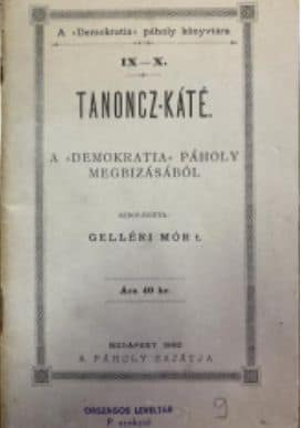 Tanoncz-káté. A ,,Demokratia” páholy megbízásából kidolgozta Gelléri Mór t., Bp., 1892.